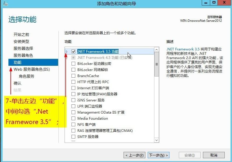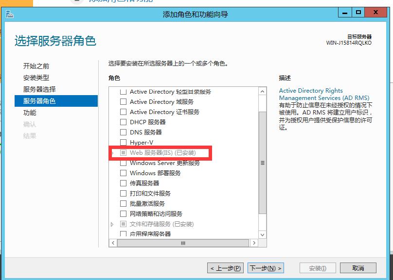 3、添加角色和功能,如上圖所示,然后出現(xiàn)下面界面,安裝下面界面一步步安裝提示安裝。