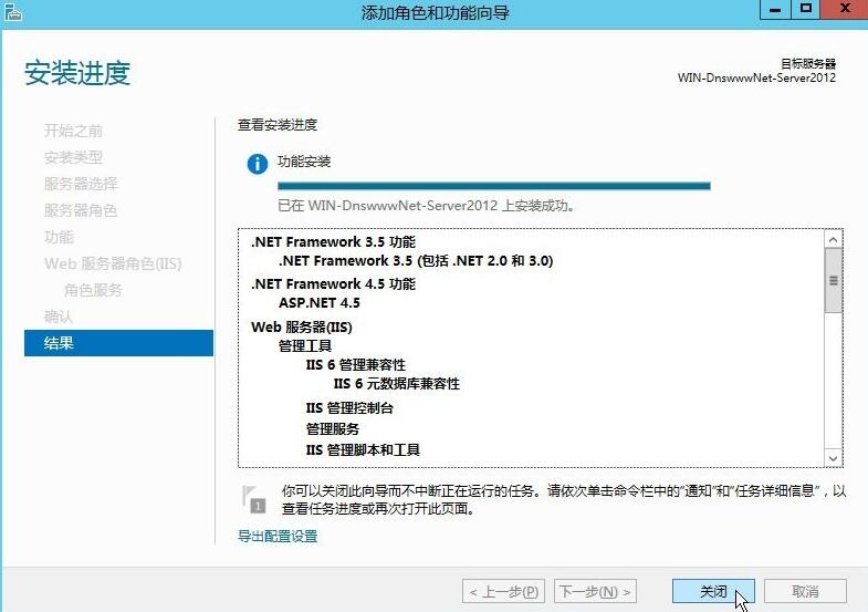 安裝成功后,上面的界面中會顯示安裝成功,如果失敗,那得要重新安裝,直接到成功為止,我們單擊“關(guān)閉”,結(jié)束安裝;以下是安裝成功后的默認(rèn)iis8.0訪問頁。你也可以直接在瀏覽器上輸入localhost,出來也是這個默認(rèn)的頁面。