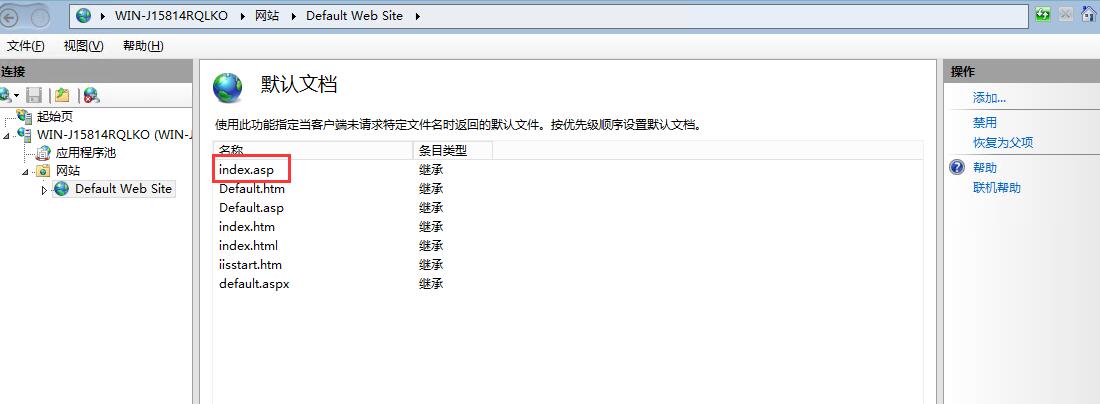查看可用的網(wǎng)頁默認(rèn)文檔,例如:index.asp 也可以是default.aspx 或者等等