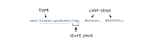 .example1 { background: -moz-linear-gradient( top,#ccc,#000); }