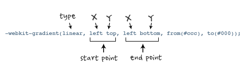 background: -webkit-gradient(linear,center top,center bottom,from(#ccc), to(#000));